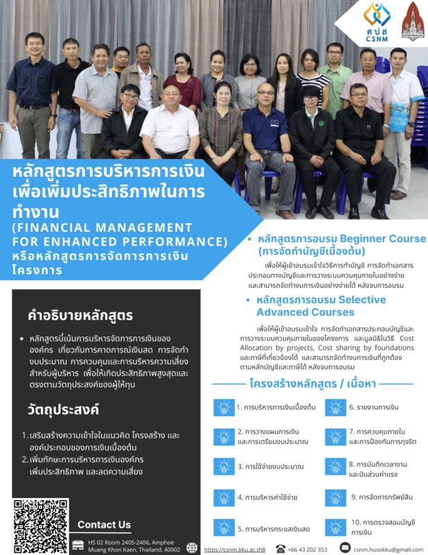 หลักสูตรการบริหารการเงินเพื่อเพิ่มประสิทธิภาพในการทำงาน (Financial Management for Enhanced Performance) หรือหลักสูตรการจัดการการเงินโครงการ