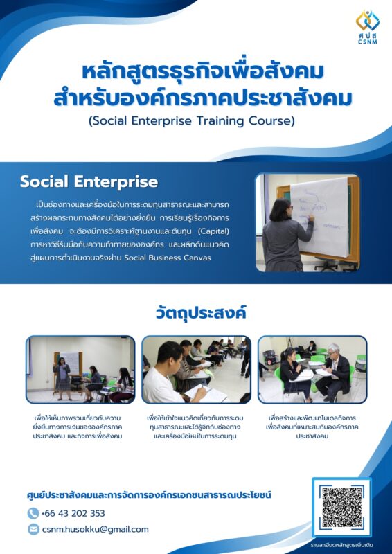 หลักสูตรธุรกิจเพื่อสังคมสำหรับองค์กรภาคประชาสังคม (Social Enterprise Training Course)